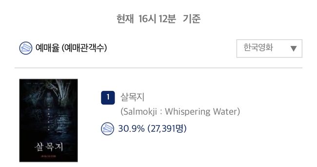 영화 '살목지'가 개봉을 앞두고 한국영화 예매율 1위에 올랐다.