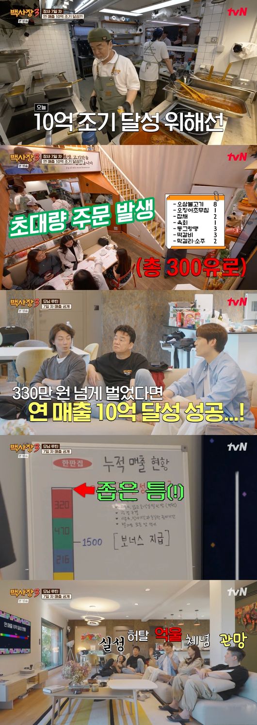 31일 방송된 tvN 예능 프로그램 ‘백사장3'에서는 프랑스에서 장사 7일차를 맞이한 '한판집' 백종원, 이장우, 존박, 권유리, 윤시윤의 모습이 그려졌다.