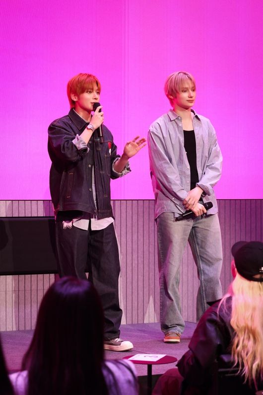 두 멤버는 팬들의 호응에 힘입어 타이틀곡을 다시 한번 함께 청취했다. 이 과정에서 짧게 안무를 선보이자 현장 분위기는 최고조에 달했다. 이어 “이렇게 모아 분들을 보니까 컴백이 실감난다. 얼른 컴백하고 싶다. 앞으로 공개될 콘텐츠들도 많이 기대해달라”라고 전했다.