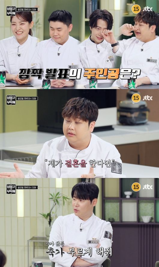 지난 주 ‘냉장고를 부탁해’에서는 방송 말미 공개된 영상을 통해 셰프 출연자 중 한 명의 결혼 발표를 예고했다. ‘냉장고를 부탁해’에 출연 중인 셰프들 중 미혼인 손종원, 윤남노, 박은영, 권성준이 후보로 떠올랐다.