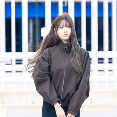 2026.03.03 14: 04르세라핌 홍은채, 시크한 브라운 봄버 재킷에 하이 슬릿 스커트
