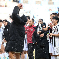 2026.02.28 16: 34물세례 받는 송민규,'승리 좋다'