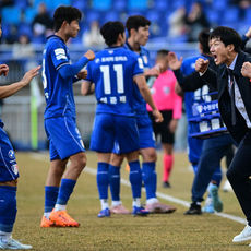 2026.02.28 18: 52역전골 강현묵 '이정효 감독과 하이파이브'