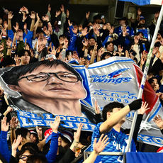 이정효 감독 걸개 건 수원 삼성