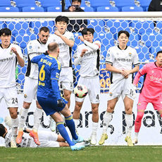 2026.02.28 14: 43프리킥 막아내는 강원FC 선수들