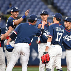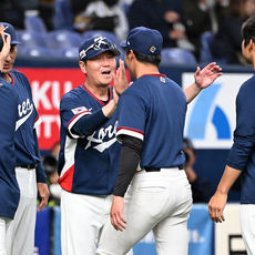 2026.03.03 15: 40류지현 감독,'대표팀 유니폼 입고 뛴 일본 선수들과 하이파이브'