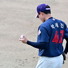 2026.03.04 11: 40김민준, 불펜 피칭 앞두고 가볍게