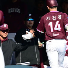 2026.03.12 16: 08서건창 솔로포 반기는 키움 설종진 감독