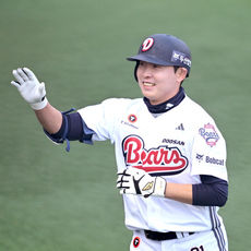2026.03.12 14: 47두산 정수빈, '시범경기 홈런포 미소'