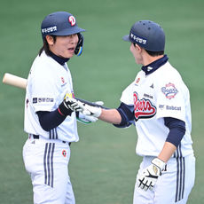 박찬호와 솔로포 기쁨 나누는 정수빈