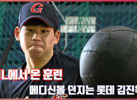 ‘ML에서 온 훈련’ 메디신볼 던지는 롯데 김진욱[O! SPORTS]