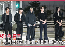 ‘차분함 속 출국’ 검은 옷 착장하고 떠나는 엔하이픈(Enhypen) [O! STAR]