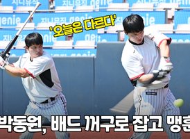 '오늘은 다르다' LG 박동원, 배트 꺼꾸로 잡고 맹훈련 [O! SPORTS]
