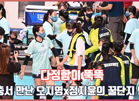 ‘다정함 뿜뿜’ 장충서 만난 오지영x정지윤의 꿀단지 인사[O! SPORTS]