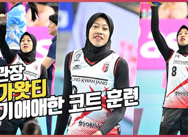 히잡 쓴 배구선수 메가왓티의 화기애애한 훈련 [O! SPORTS]